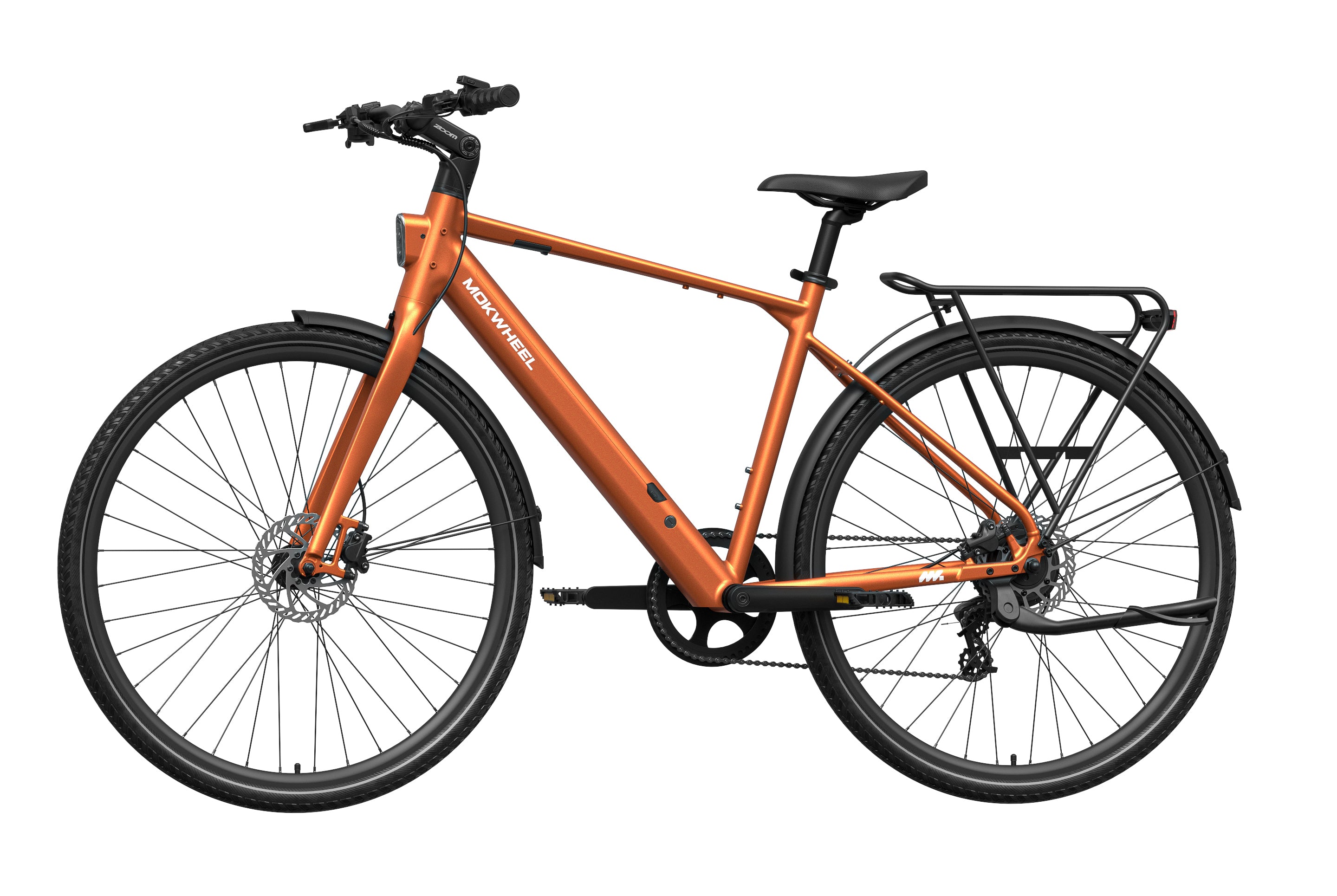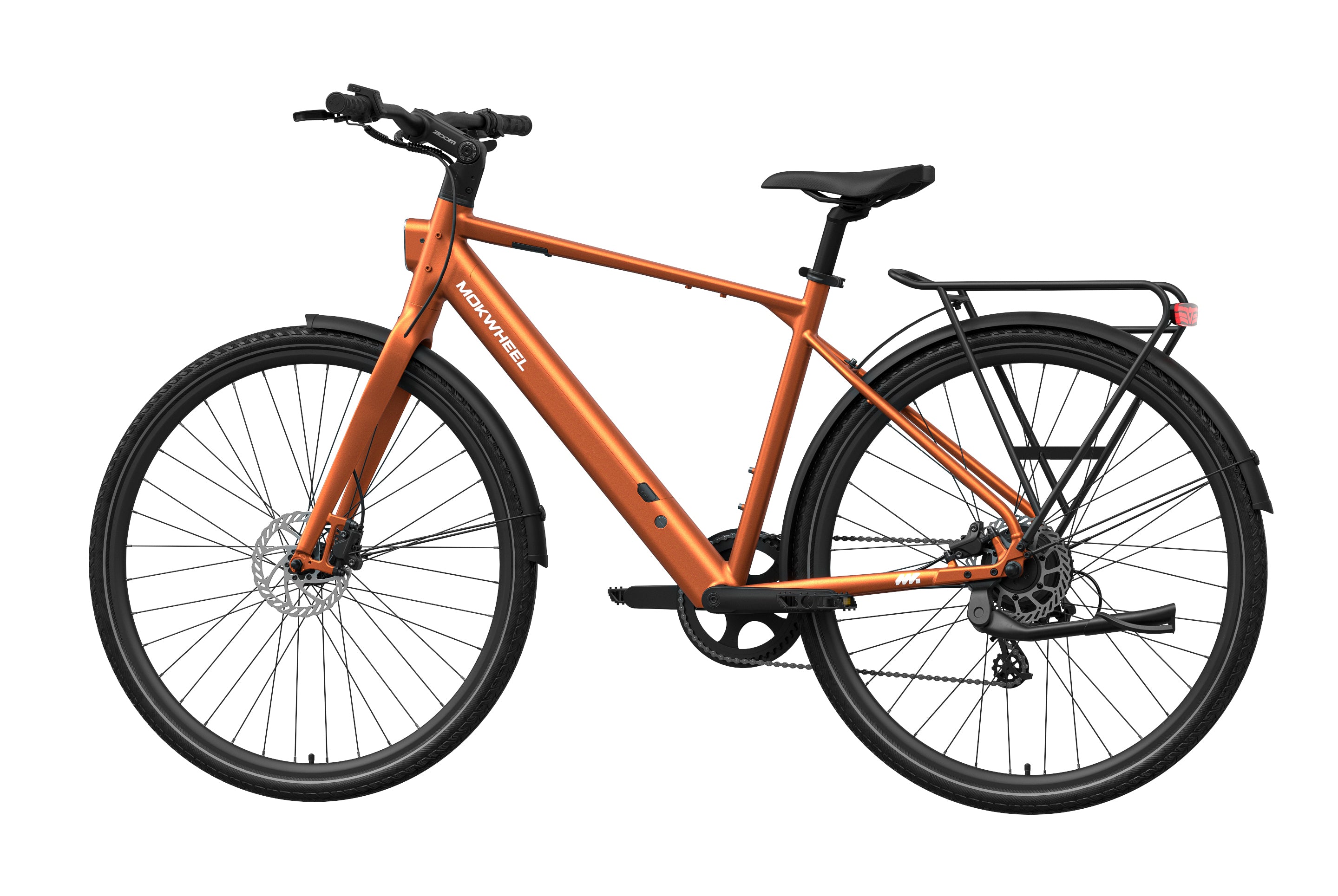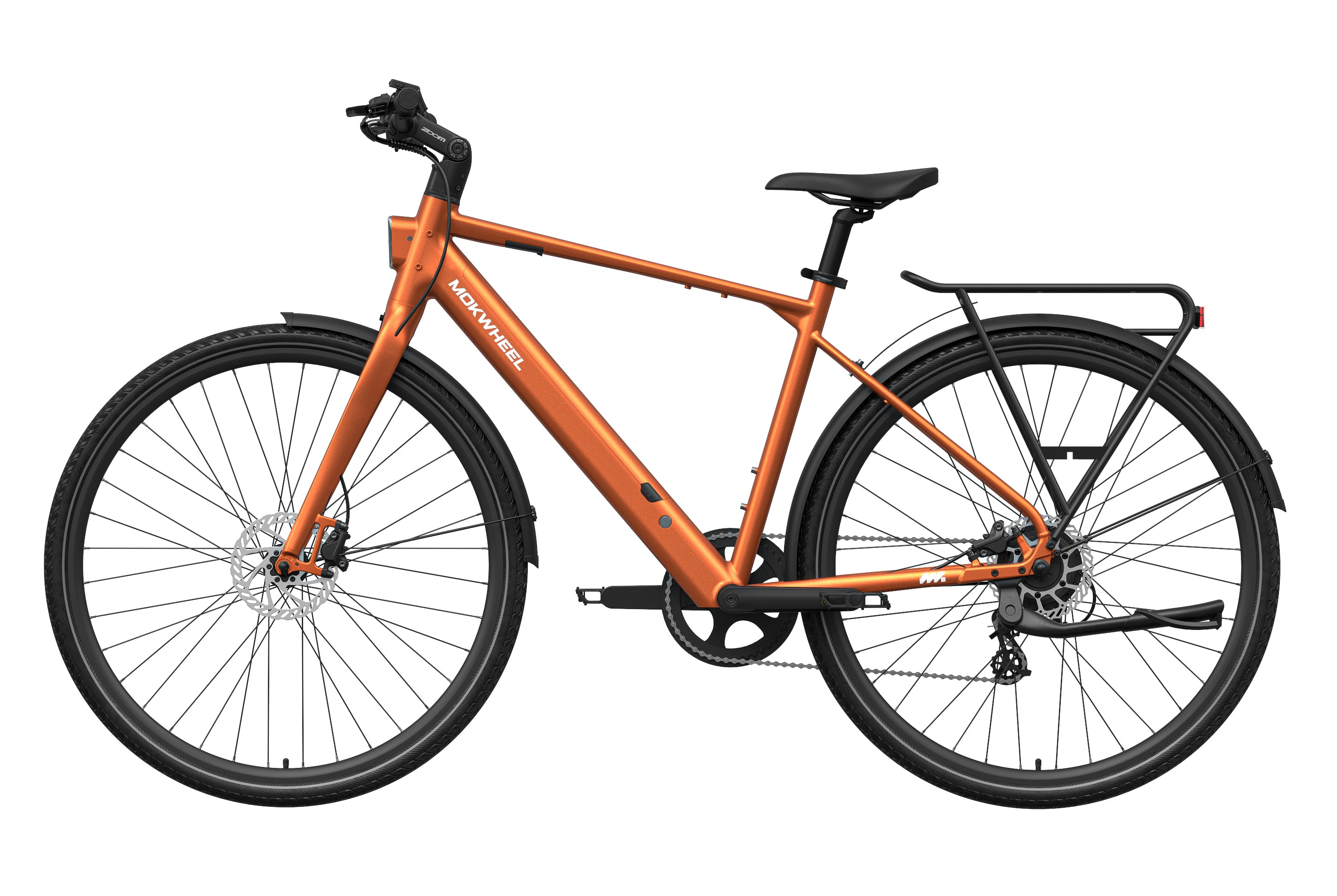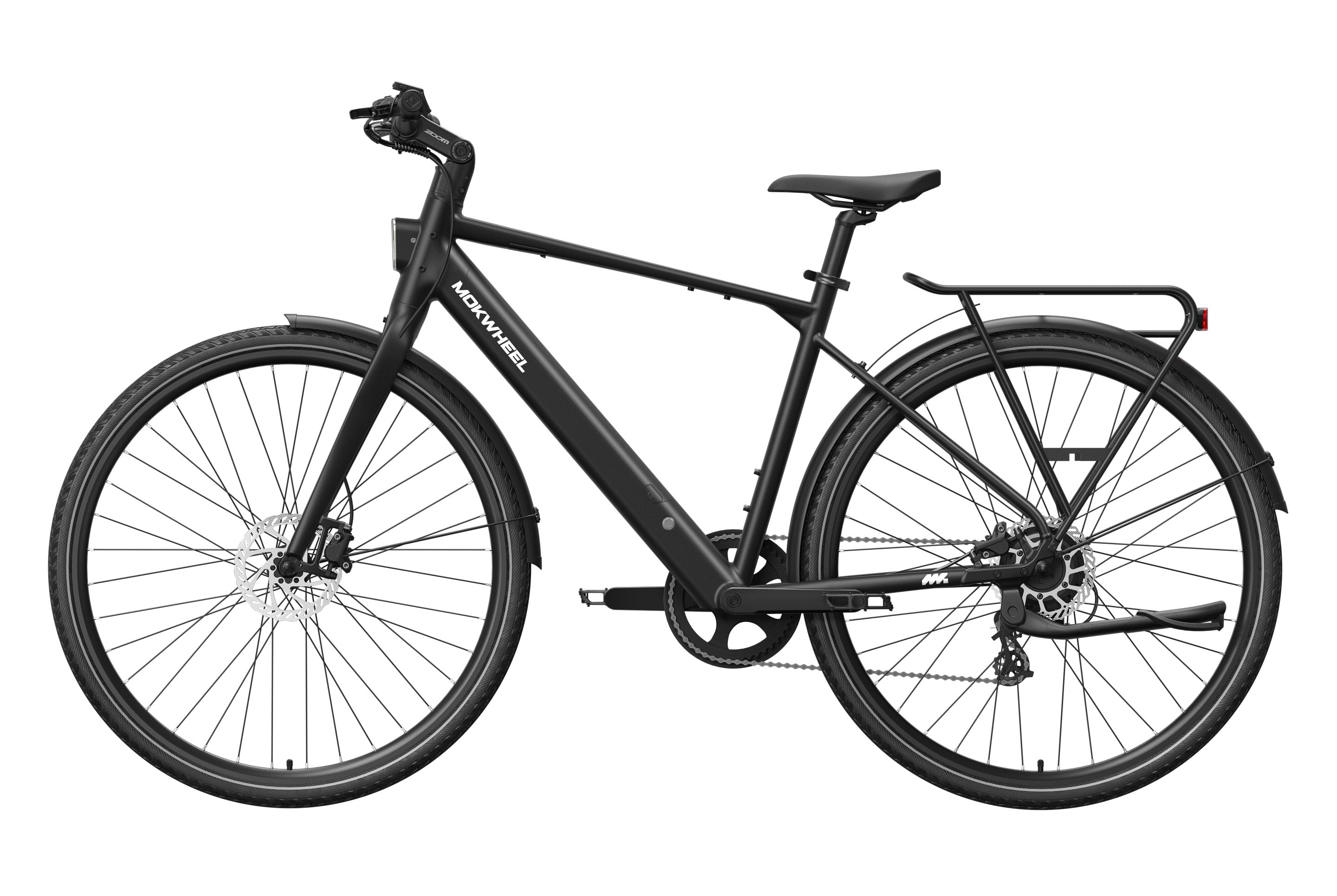 FLINT is a lightweight electric bike designed by Mokwheel specifically for city commuting, focusing on agile handling, smooth power delivery, and a more convenient daily riding experience. It is powered by a 550W peak motor with 40Nm of torque and supports a 350-lb load, maintaining stable and sufficient output on city roads, in acceleration sections, and on mild slopes. With a hydraulic brake system, SHIMANO 8-speed drivetrain, and a lightweight frame structure, it achieves an excellent balance of speed, quality, and reliability, meeting the needs of urban commuting, daily transportation, and frequent use.