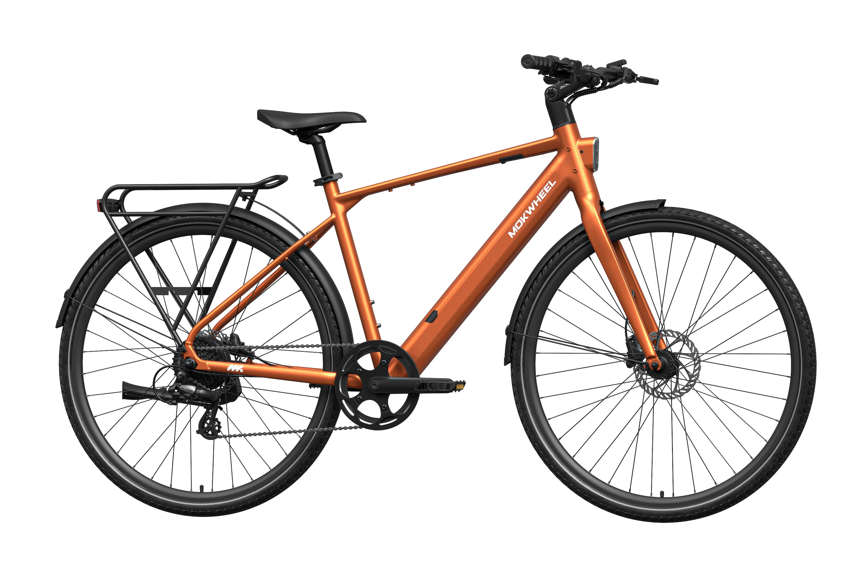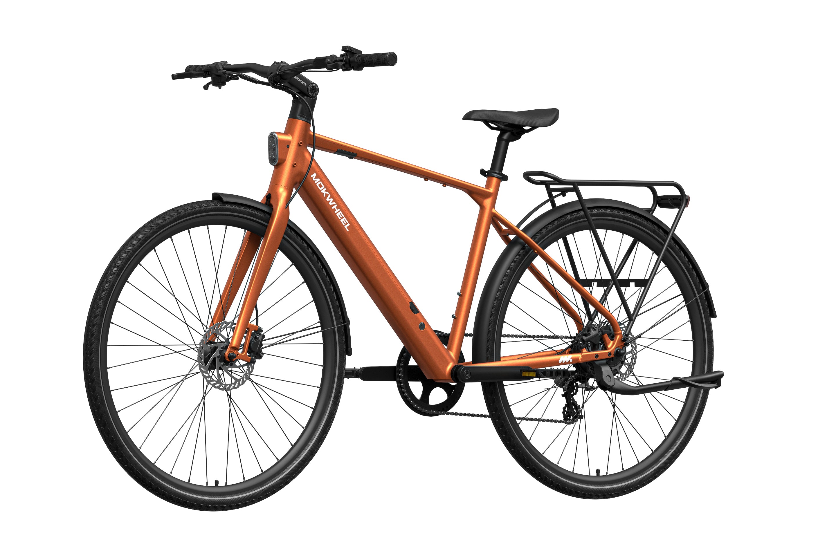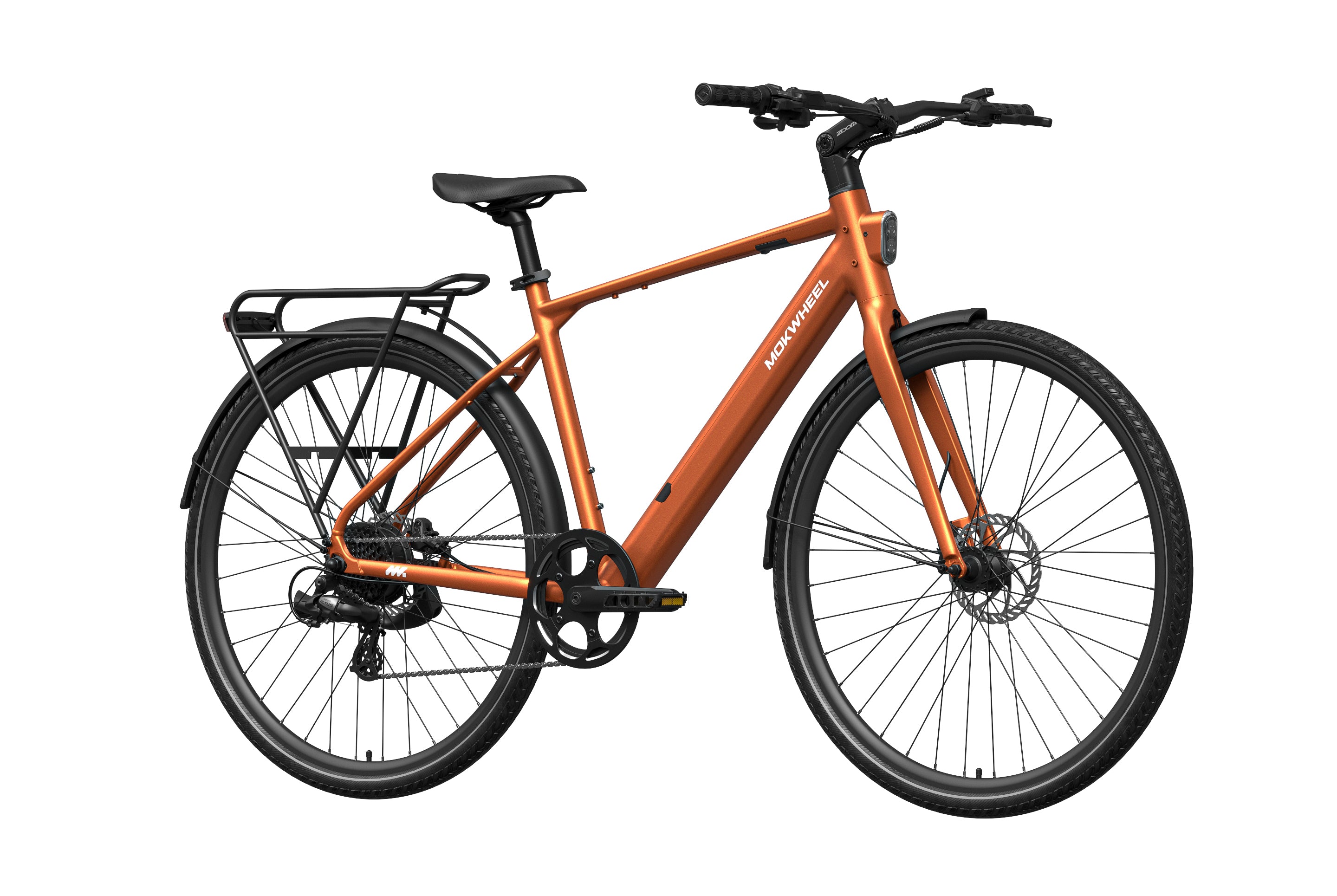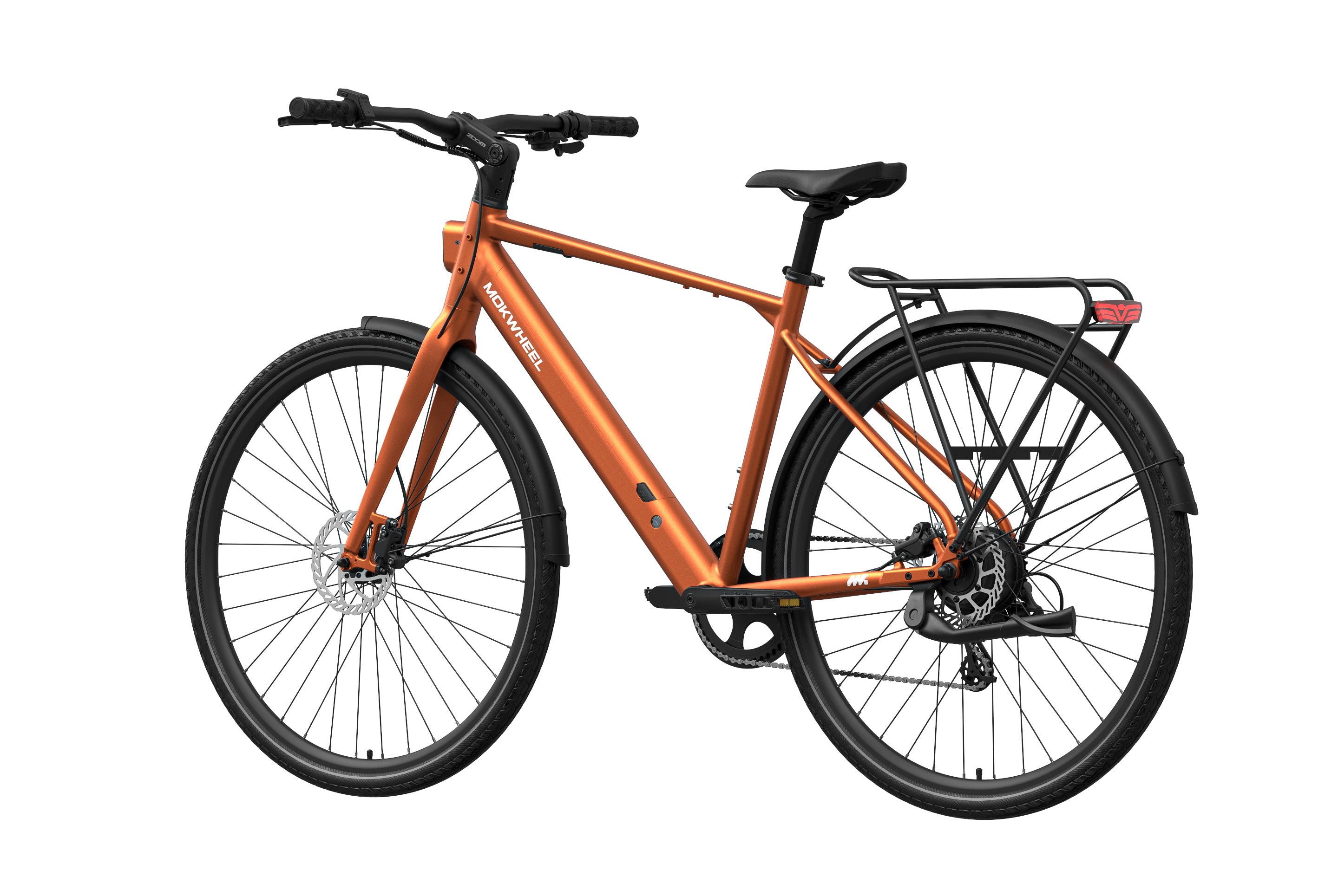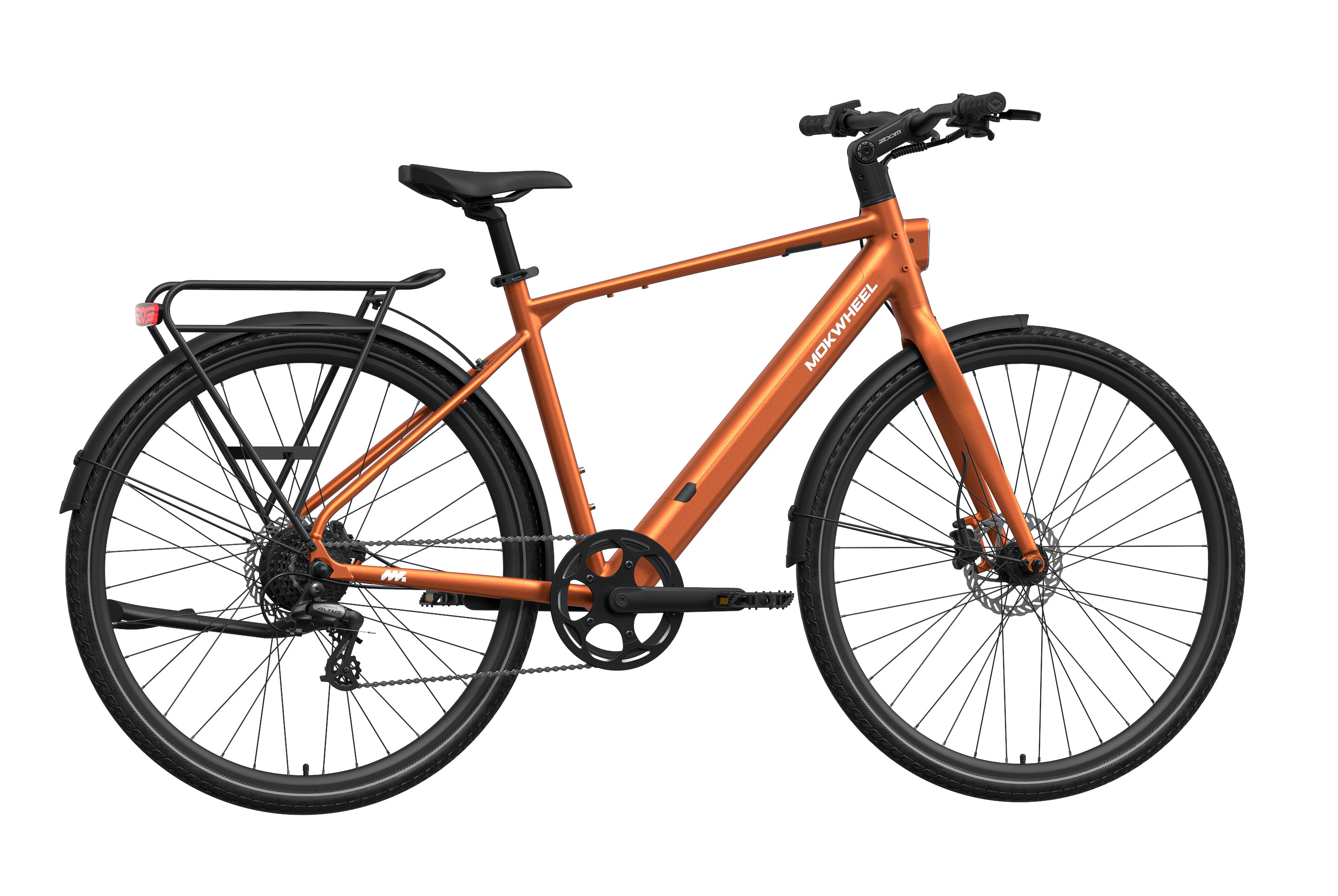 FLINT is a lightweight electric bike designed by Mokwheel specifically for city commuting, focusing on agile handling, smooth power delivery, and a more convenient daily riding experience. It is powered by a 550W peak motor with 40Nm of torque and supports a 350-lb load, maintaining stable and sufficient output on city roads, in acceleration sections, and on mild slopes. With a hydraulic brake system, SHIMANO 8-speed drivetrain, and a lightweight frame structure, it achieves an excellent balance of speed, quality, and reliability, meeting the needs of urban commuting, daily transportation, and frequent use.