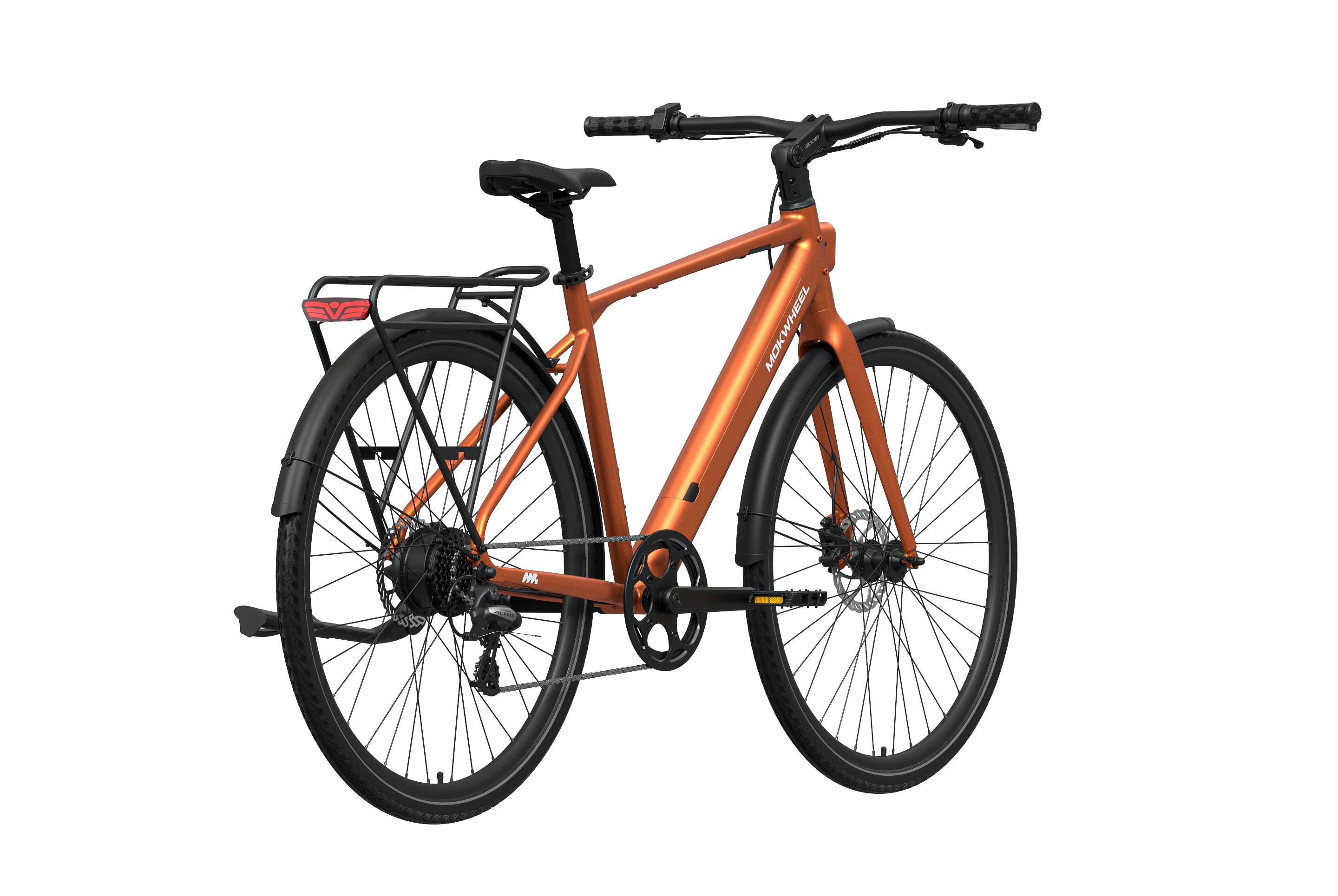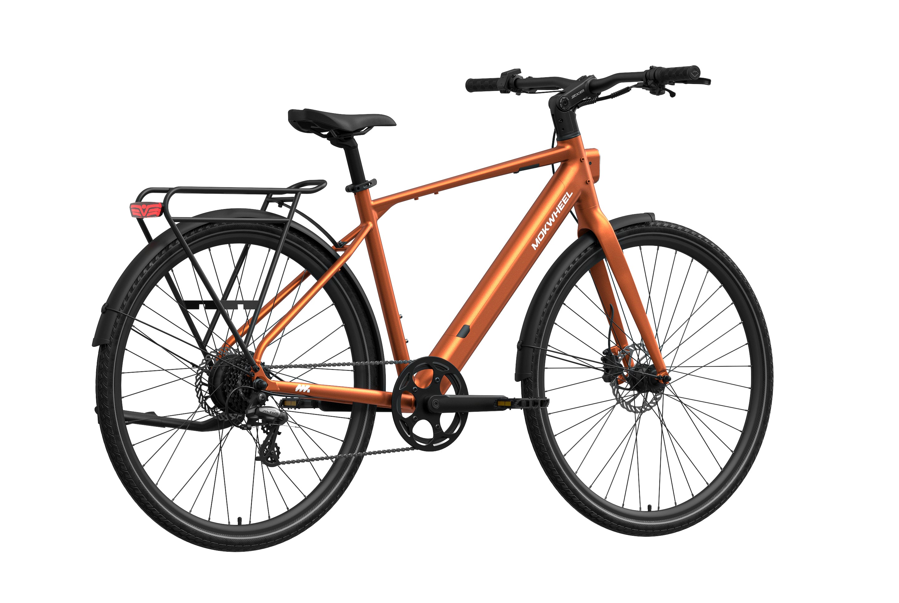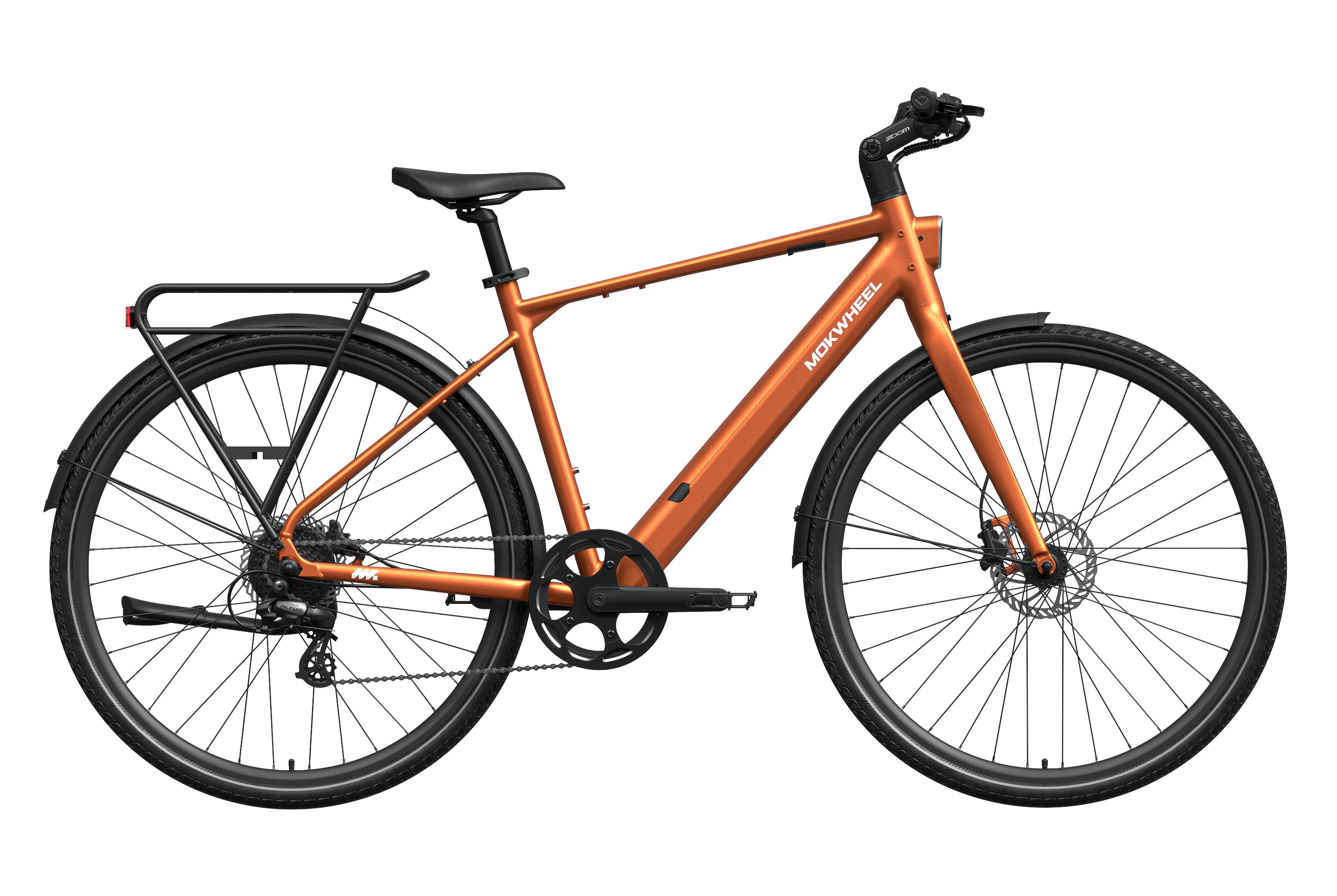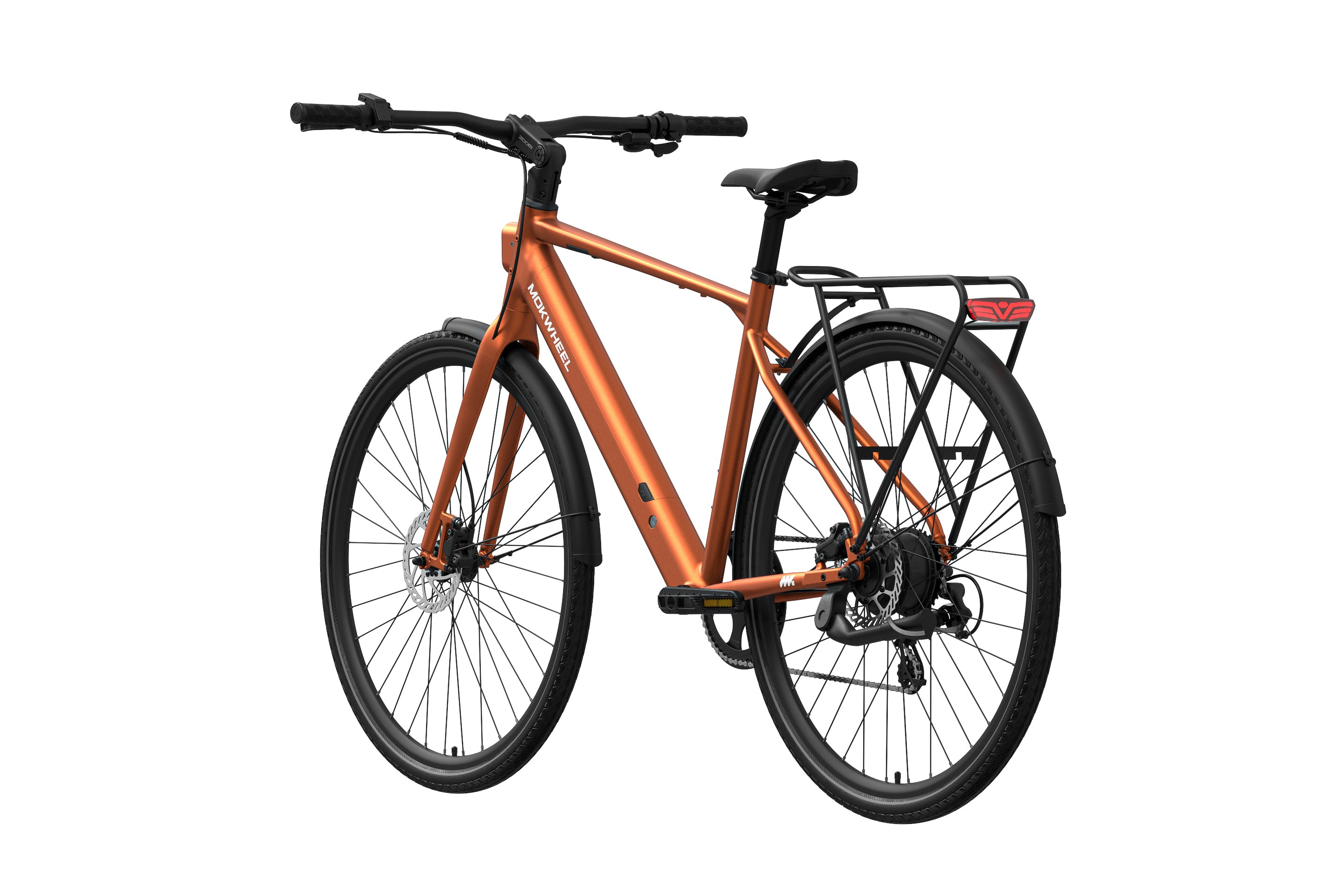 FLINT is a lightweight electric bike designed by Mokwheel specifically for city commuting, focusing on agile handling, smooth power delivery, and a more convenient daily riding experience. It is powered by a 550W peak motor with 40Nm of torque and supports a 350-lb load, maintaining stable and sufficient output on city roads, in acceleration sections, and on mild slopes. With a hydraulic brake system, SHIMANO 8-speed drivetrain, and a lightweight frame structure, it achieves an excellent balance of speed, quality, and reliability, meeting the needs of urban commuting, daily transportation, and frequent use.
