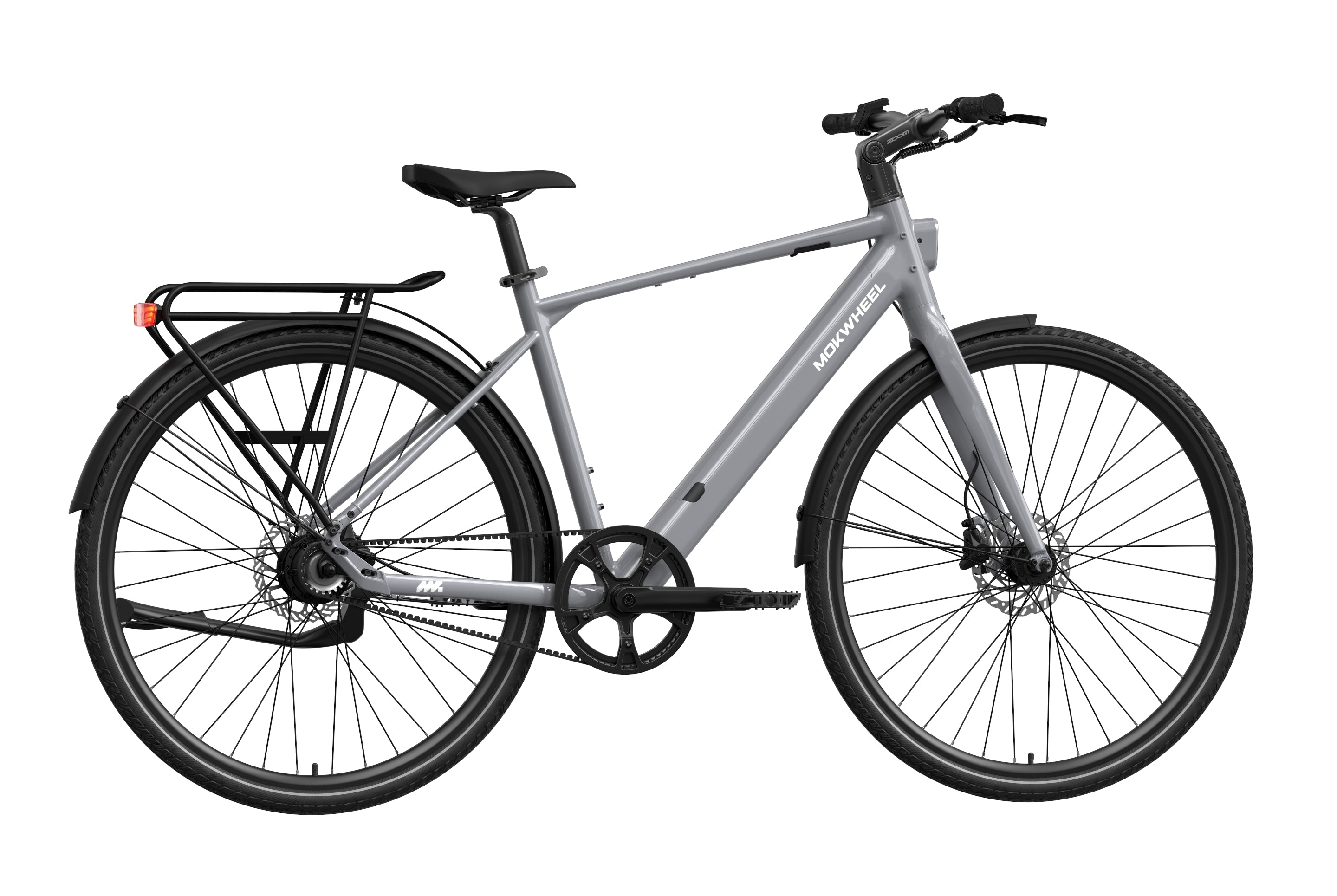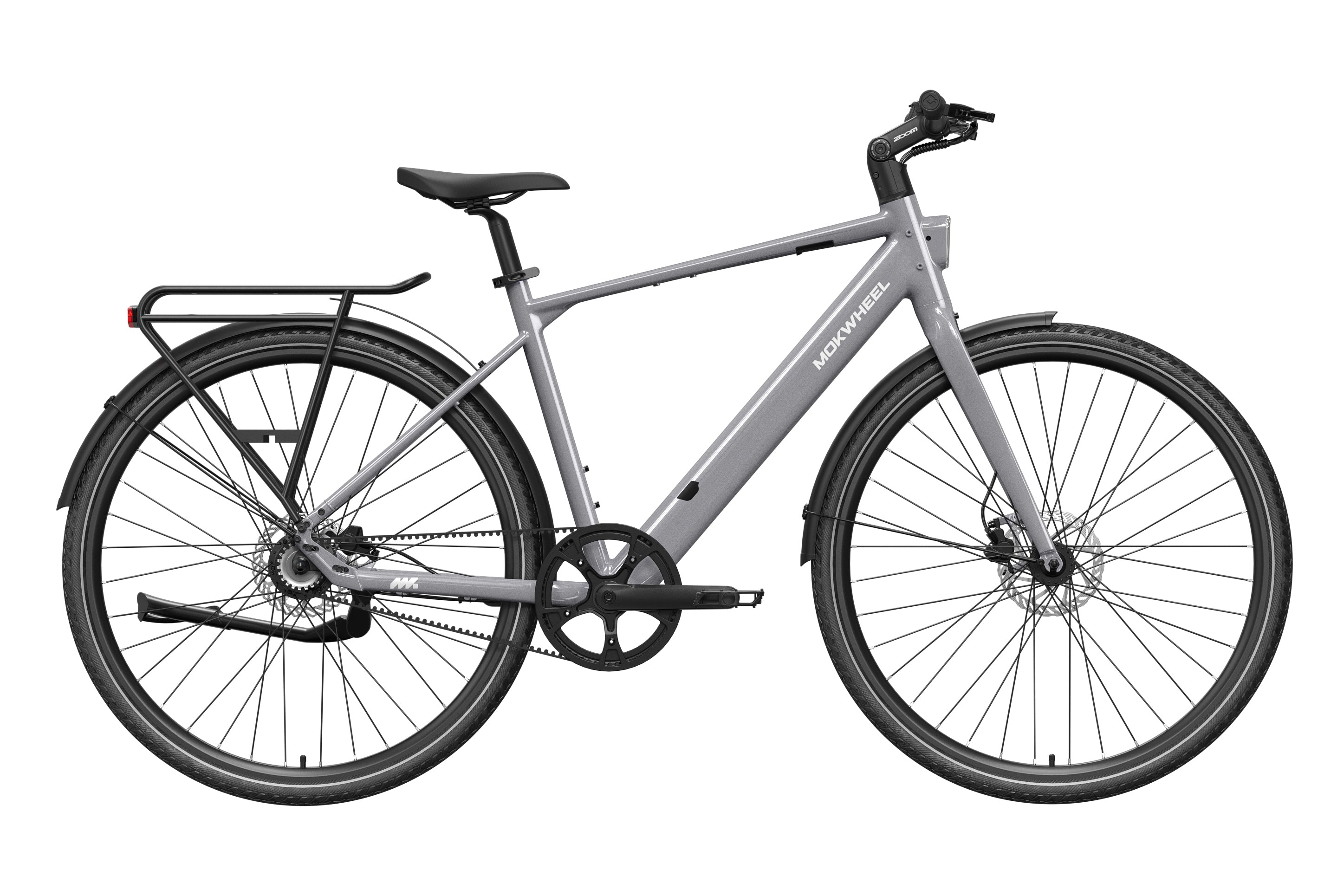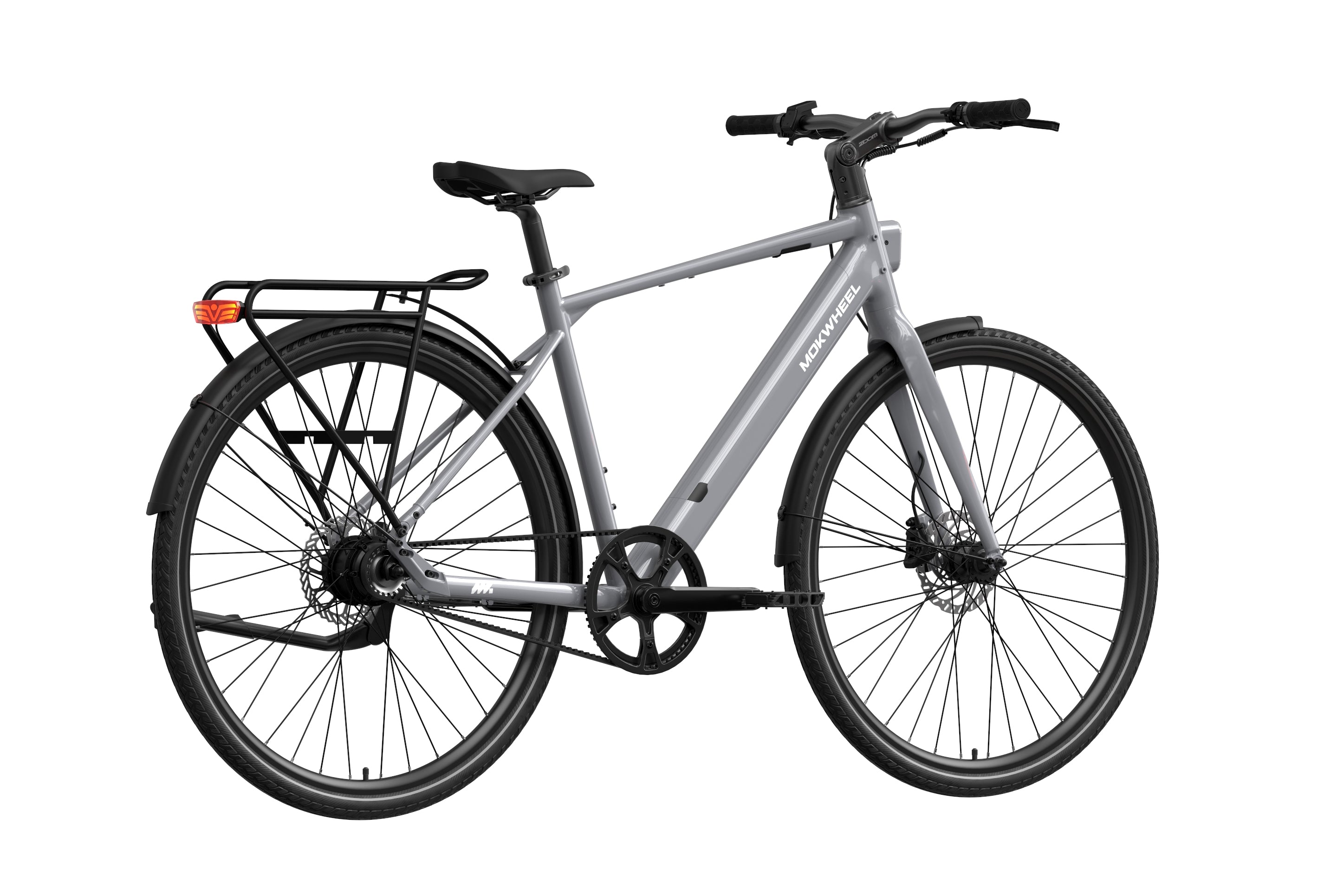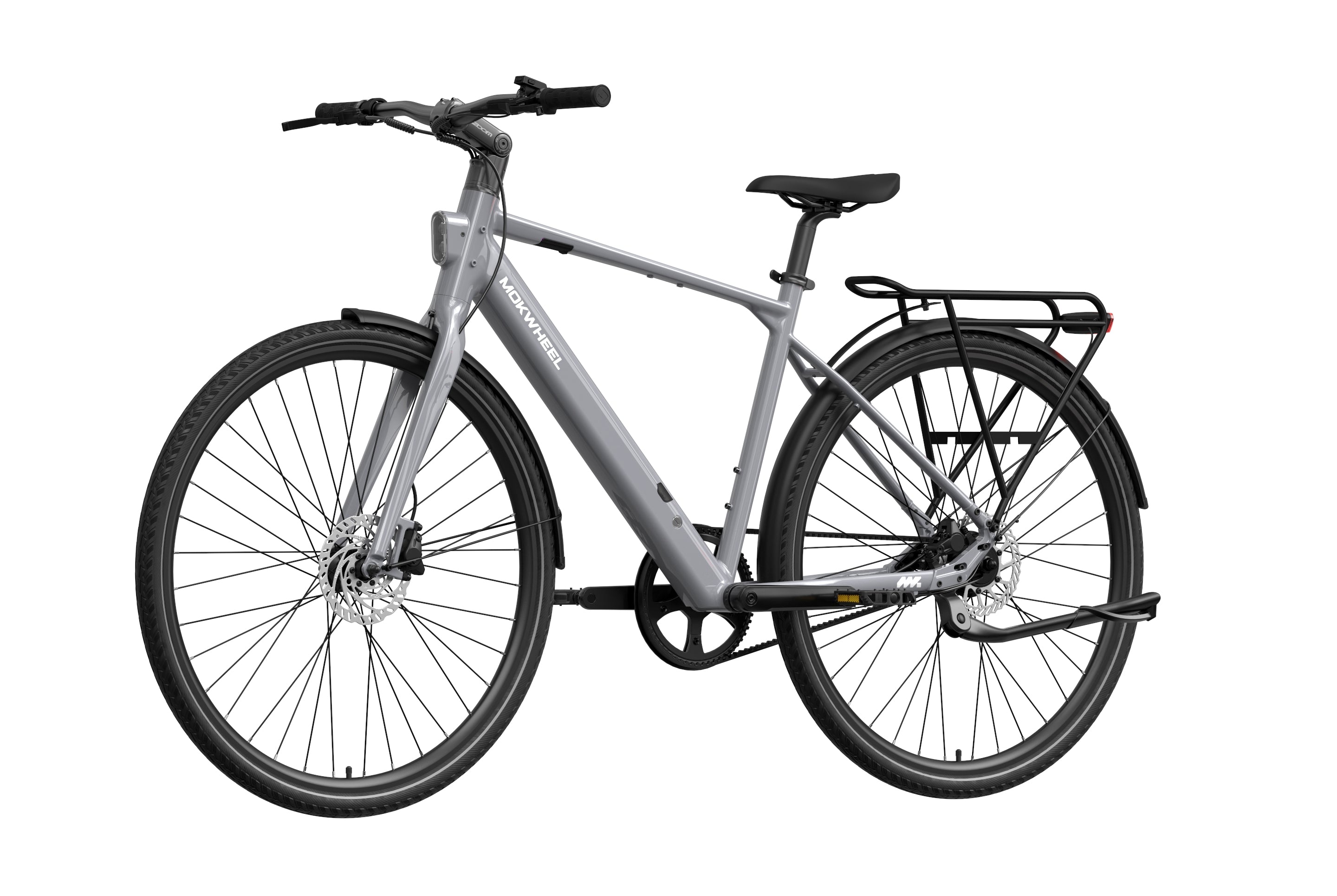FLINT PRO is a lightweight premium commuter eBike developed by Mokwheel, centered on quiet performance, low maintenance, and a more advanced city riding experience. Its 500W peak motor and 40Nm of torque provide linear and sufficient power output, and the Gates belt-drive single-speed system delivers quiet, stable, and long-lasting performance. The 350-lb load capacity offers stronger practicality, the dual-piston hydraulic brakes provide stable and responsive braking in city conditions, and the adjustable stem makes the riding posture more flexible and comfortable. Lightweight, durable, and easy to ride, FLINT PRO brings a higher-quality riding experience to daily commuting.