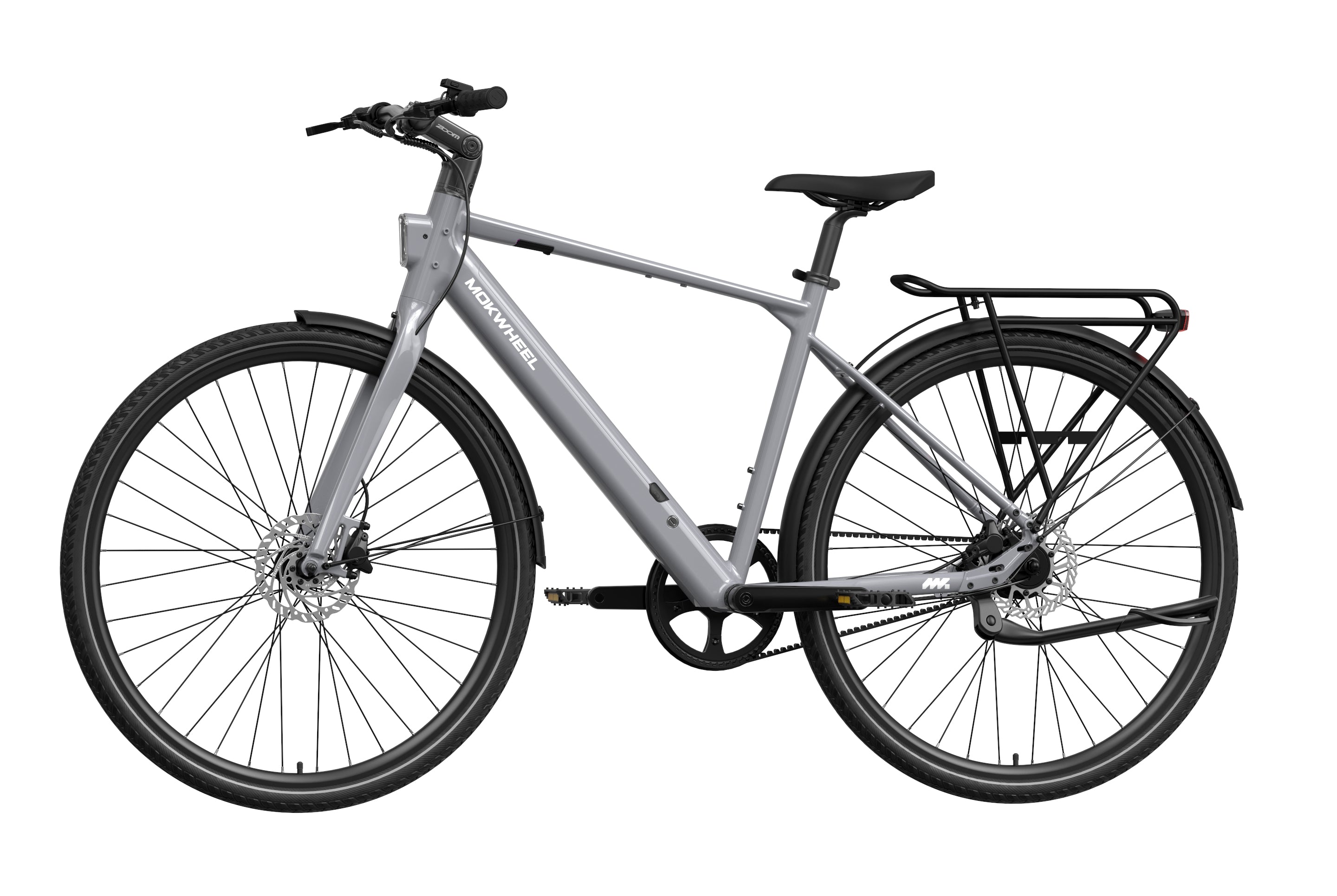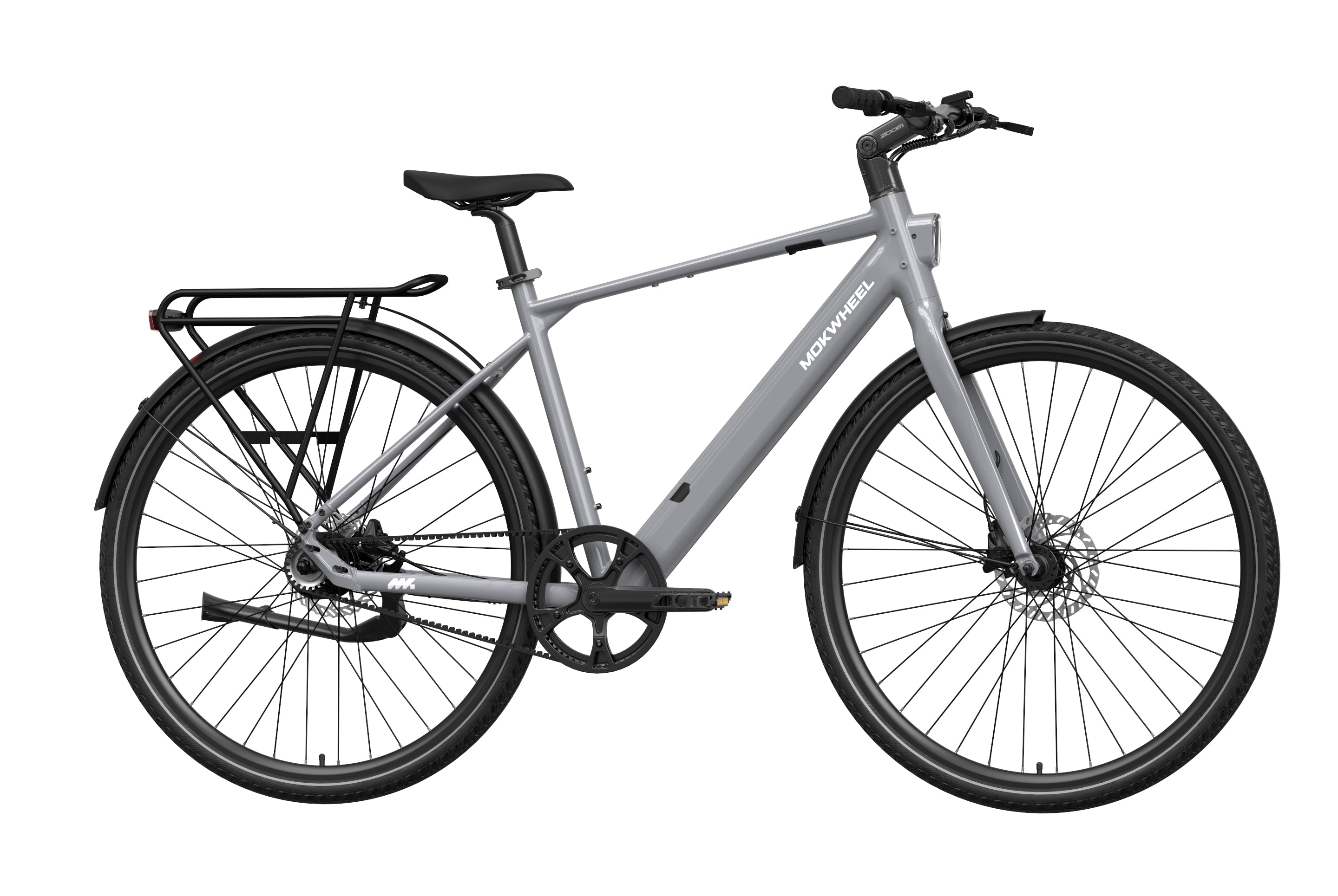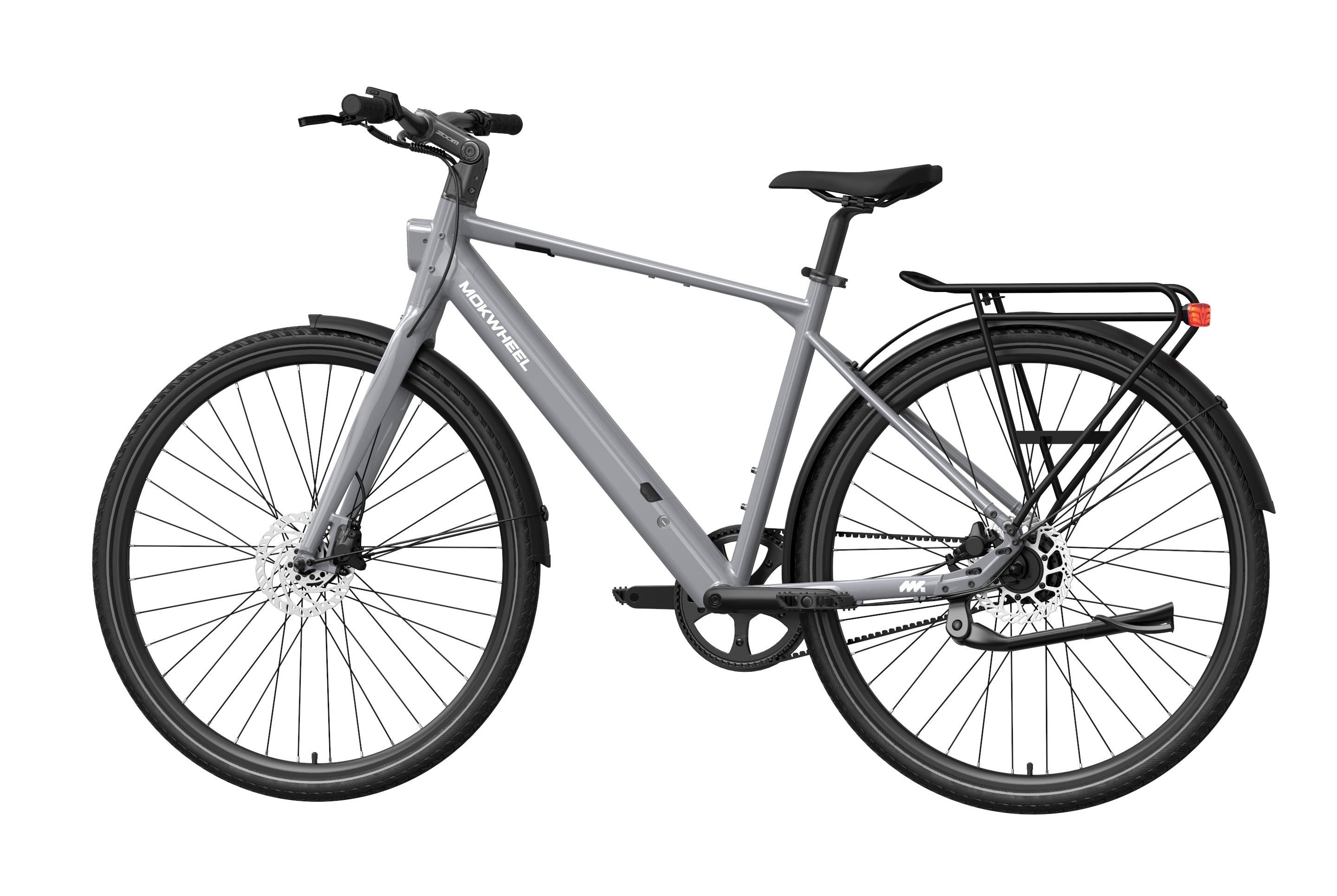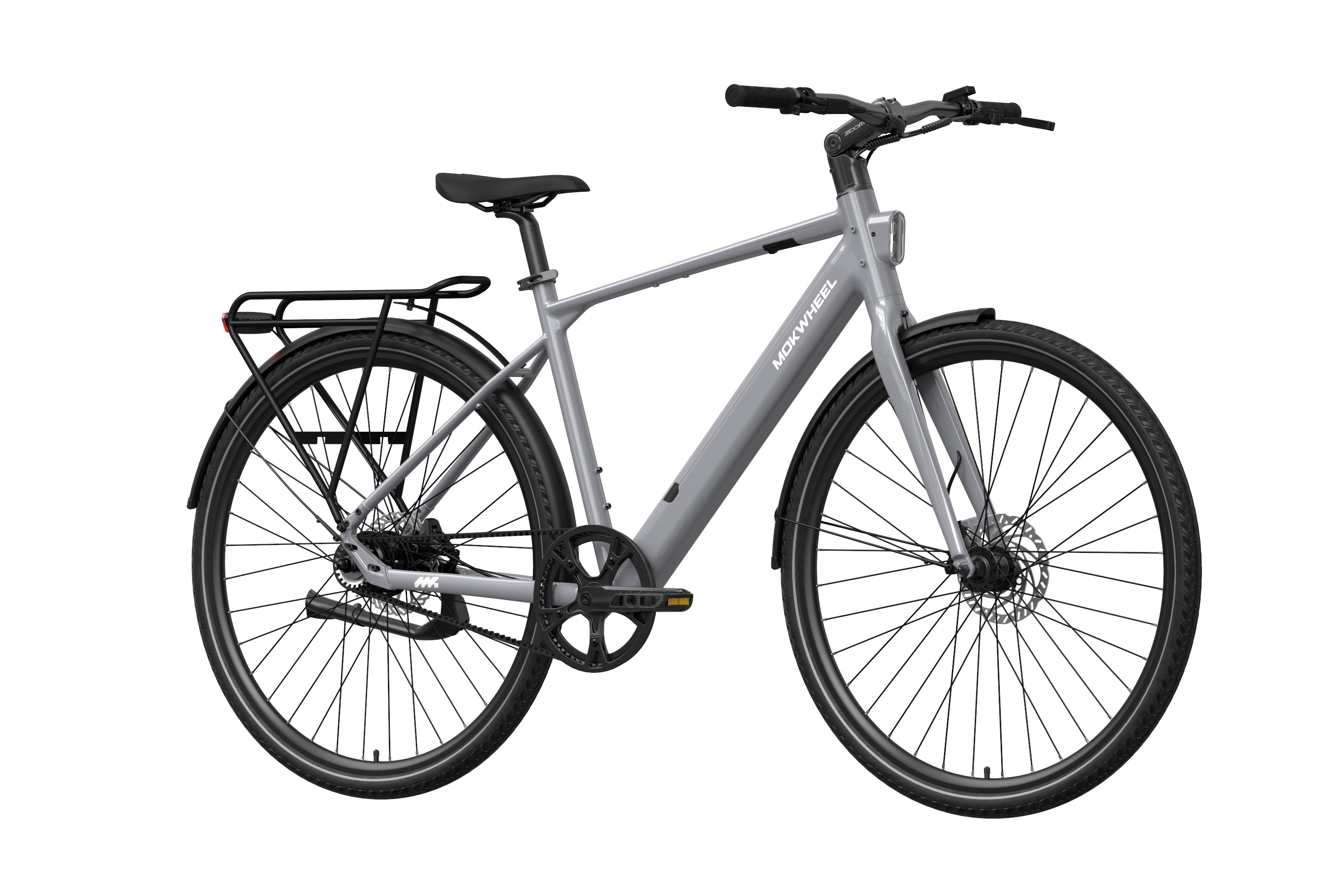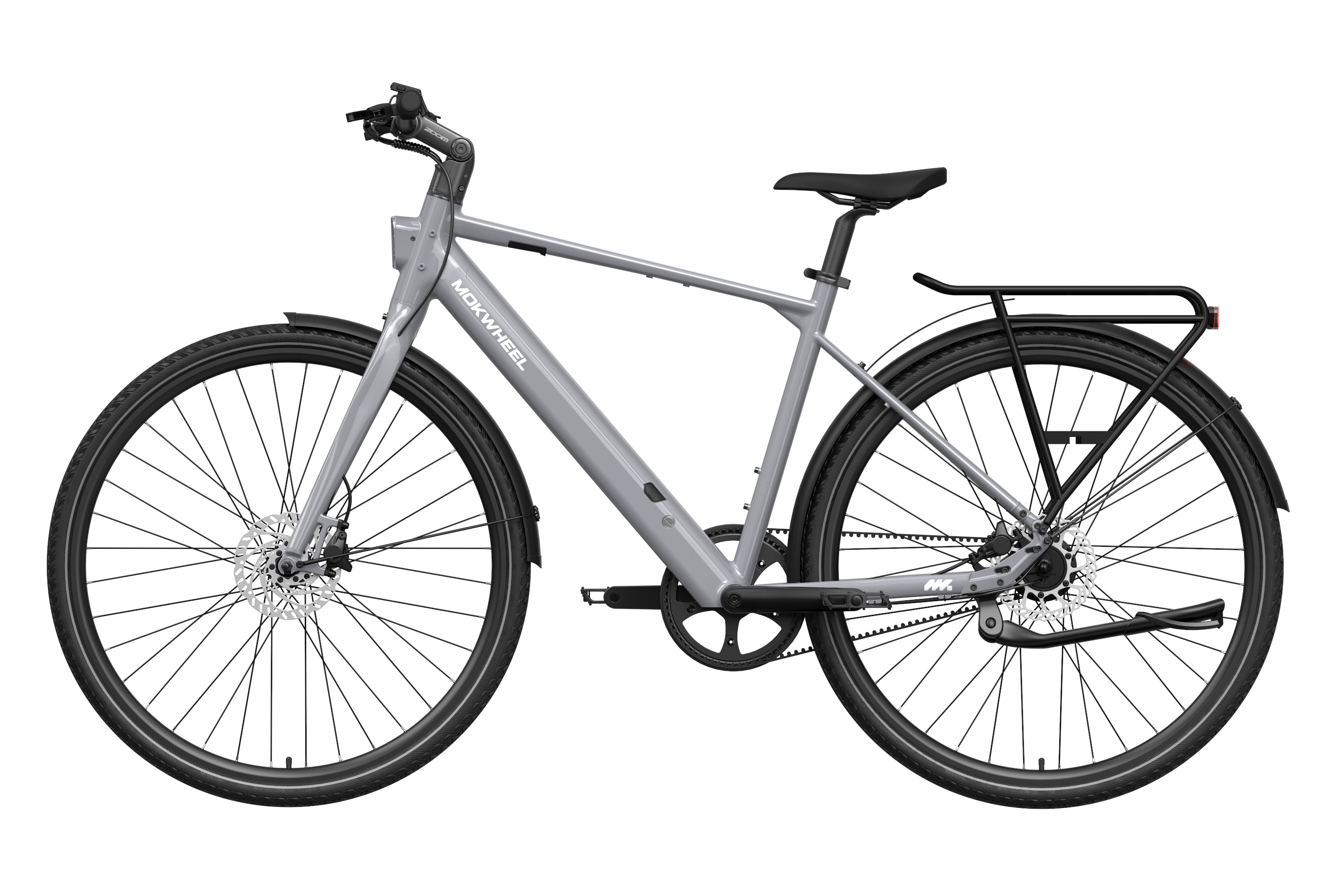 FLINT PRO is a lightweight premium commuter eBike developed by Mokwheel, centered on quiet performance, low maintenance, and a more advanced city riding experience. Its 500W peak motor and 40Nm of torque provide linear and sufficient power output, and the Gates belt-drive single-speed system delivers quiet, stable, and long-lasting performance. The 350-lb load capacity offers stronger practicality, the dual-piston hydraulic brakes provide stable and responsive braking in city conditions, and the adjustable stem makes the riding posture more flexible and comfortable. Lightweight, durable, and easy to ride, FLINT PRO brings a higher-quality riding experience to daily commuting.